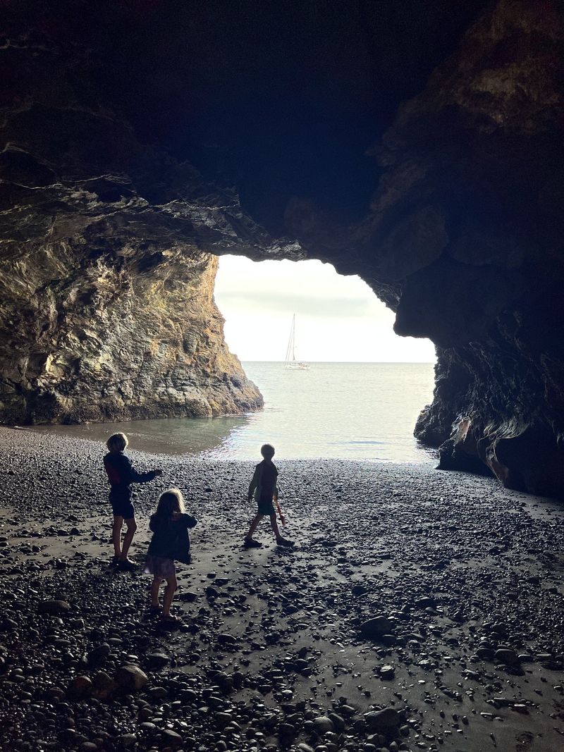 After watching a miraculous Mariner’s playoff game, we plotted our return to Santa Cruz Island. We wanted to make it to Painted Cave on the northwest side of the island. We found a patch of relatively settled weather (moderate west to northwest winds & seas) and headed out after school on Monday. We spent our first evening anchored in Little Scorpion, getting some protection from the breeze and swell before departing early in the morning for Cueva Valdez and Painted Cave.