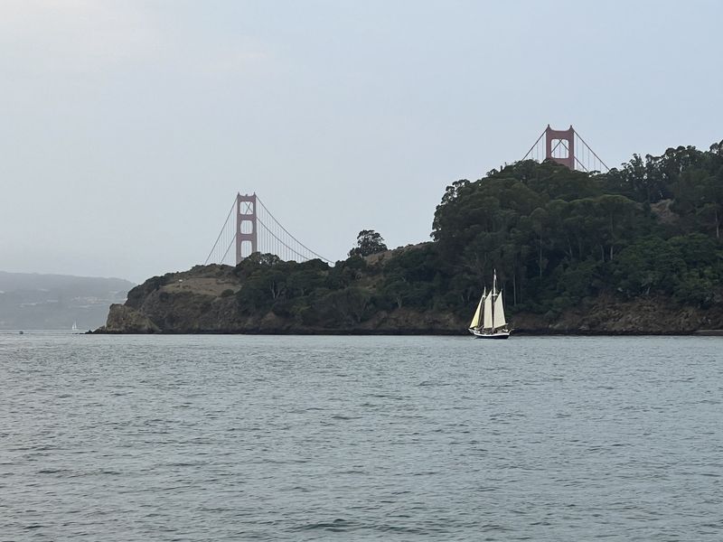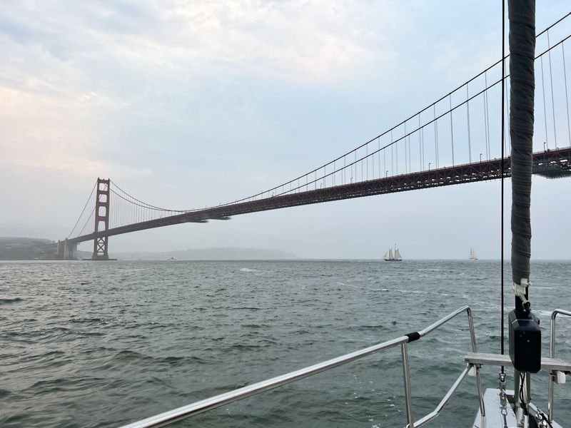 There was smoke in the air from forest fires mixing with some fog, creating a bit of an ominous look as we rounded the corner and headed out to sea. Everyone was super excited to see the Golden Gate Bridge up close. As night settled in, we made our way out the Channel. We didn’t cut the route and head south due to the dying light and wanting to make sure we didn’t end up at cross-purposes to incoming vessel traffic.
