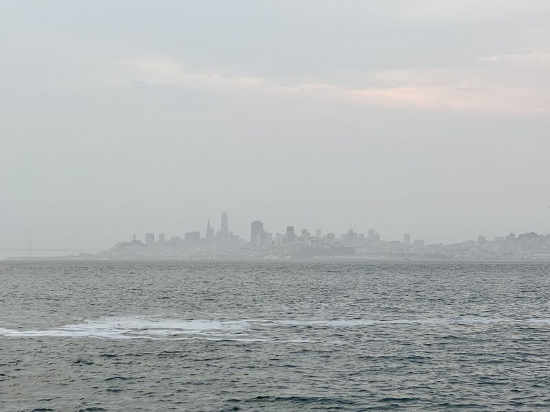 Departing Sausalito, with a mixture of cloud, fog, and smoke